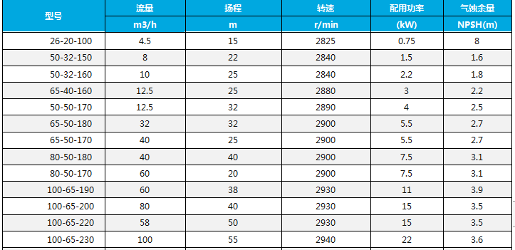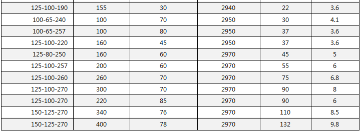 流量 4.5~400m3/h揚程15~85m,轉速2900r/min。