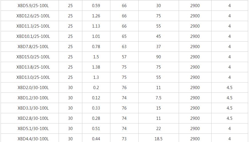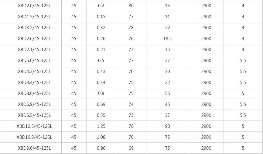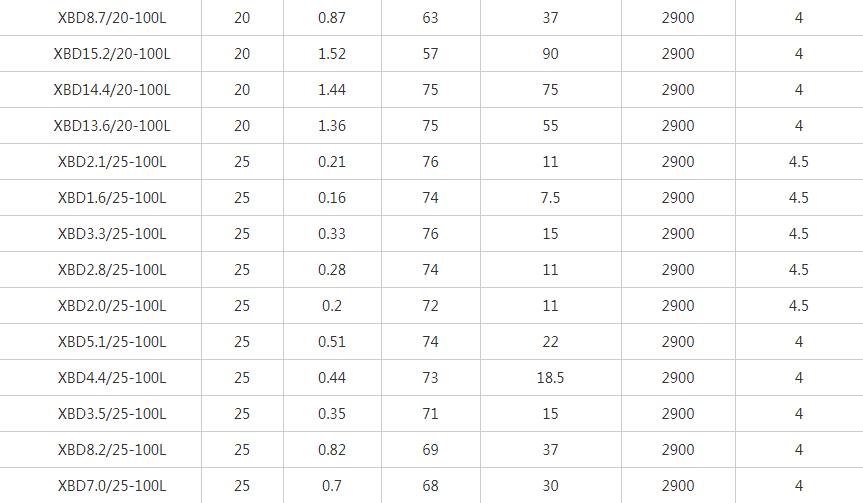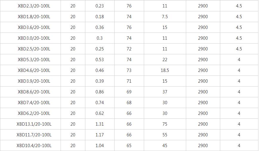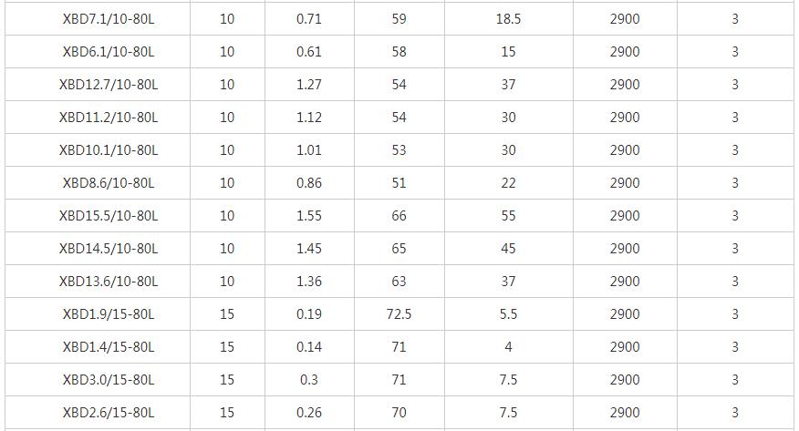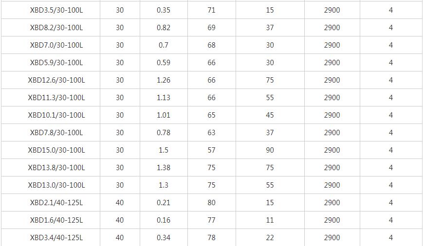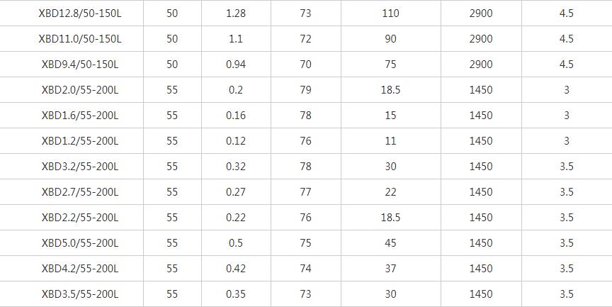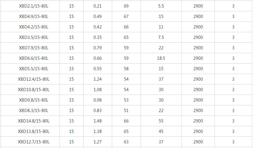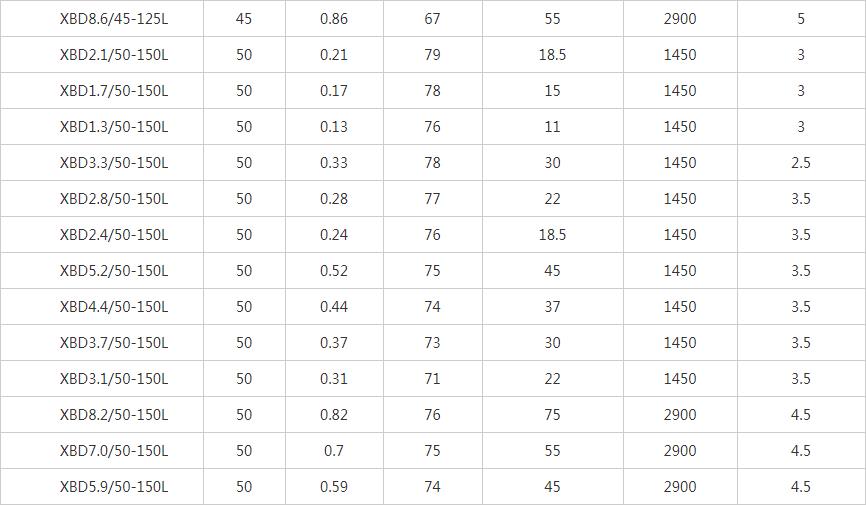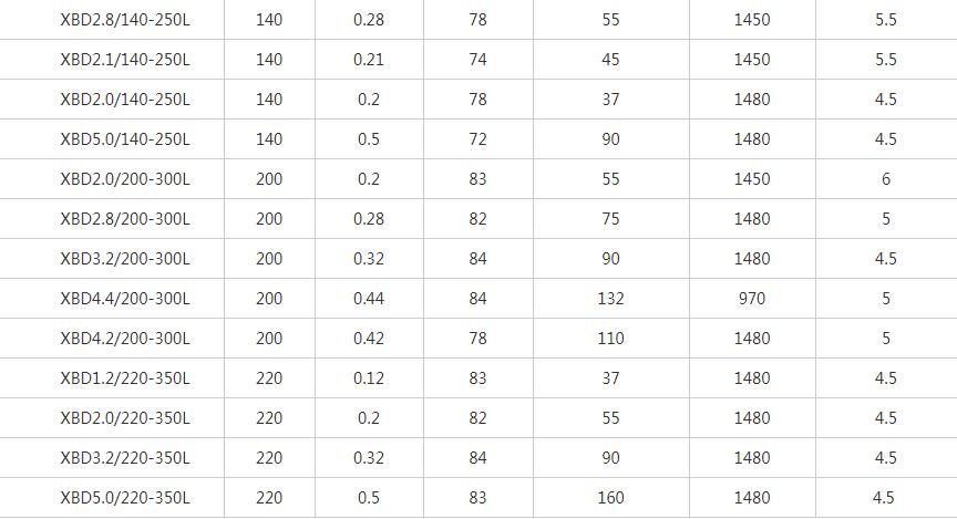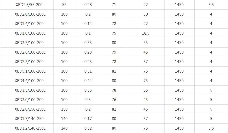 XBD-L立式單級消防泵性能參數表